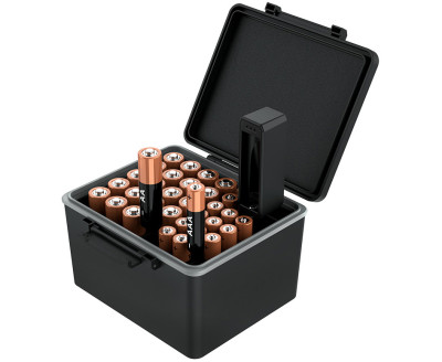 Защитный бокс на 30 AA, 18 AAA и 10 батареек-таблеток с тестером уровня заряда
