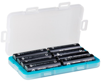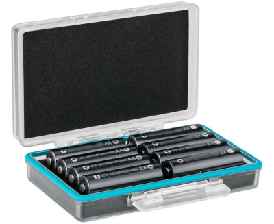 Защитный бокс на восемь AA и два AAA аккумулятора с тестером уровня заряда